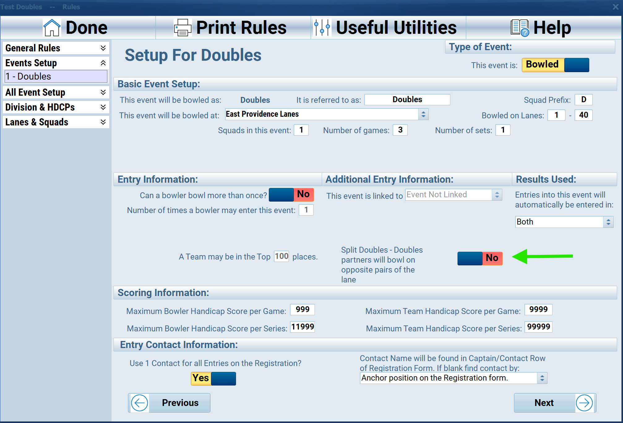 In the window that opens, click "Events Setup" (on the left side) and choose "Doubles".